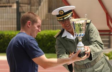 | Keywords: CUTTER BEAR VISITS MOROCCO DVIDS1077504.jpg en MOROCCO June 21 2005 Ensign Scott Mitchell left and the captain of a Moroccan Navy soccer team hold up trophies after a game between the Moroccan Navy soccer team and the crew of the Coast Guard Cutter Bear in Agadir Morocco June 21 USCG photo by PA2 Andrew Shinn 2005-06-21 Petty Officer 2nd Class Andrew Shinn https //www dvidshub net/image/1077504 1077504 2013-12-11 17 43 MOROCCO ID US PD-USGov USCGC Bear WMEC-901 Images from DoD uploaded by Fæ |