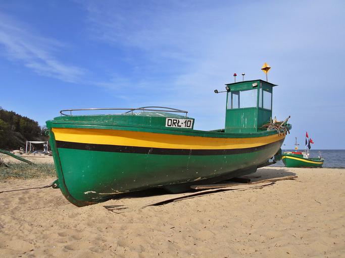 Keywords: cutter boat the barge sea the baltic sea the coast ship beach sand fishing field