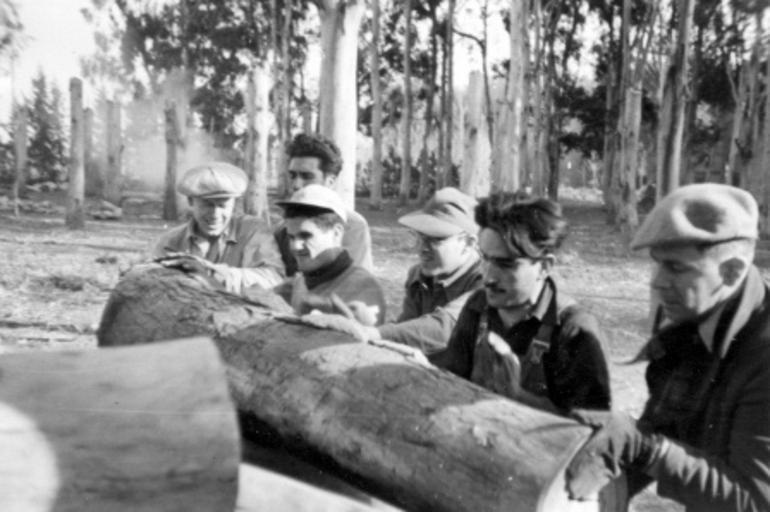 Keywords: argentina lumber team work teamwork blackandwhite monochrome black and white Caption: Northern and Southern Mennonites working hard together cutting lumber at the church campgrounds. Working with them are three Mennonite missionaries: John Koppenhaver, Delbert Erb, and Lawrence Brunk. circa 1954. Citation: Mennonite Board of Missions. Photographs. Argentina, 1942-1963. IV-10-7.2 Box 1 folders 41, photo #45. Mennonite Church USA Archives - Goshen. Goshen, Indiana. Caption: Northern and Southern Mennonites working hard together cutting lumber at the church campgrounds. Working with them are three Mennonite missionaries: John Koppenhaver, Delbert Erb, and Lawrence Brunk. circa 1954. Citation: Mennonite Board of Missions. Photographs. Argentina, 1942-1963. IV-10-7.2 Box 1 folders 41, photo #45. Mennonite Church USA Archives - Goshen. Goshen, Indiana.