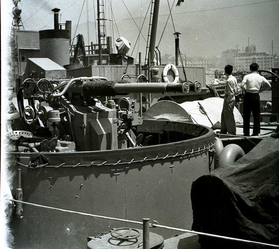 Keywords: CVS-10Img210.jpg A twin 40 mm mount on a warship USS Yorktown CVA-10 唐山健志郎 1956-05-20 唐山健志郎 PD なし 参 :http //blogs yahoo co jp/autumn_snake_1995 Aboard USS Yorktown CV-10 Bofors 40 mm gun naval Black and white photographs