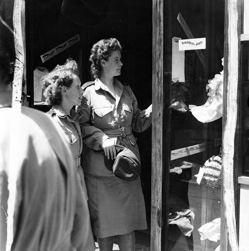 | Keywords: galt museum galtmuseum galt archives galtarchives c.w.a.c. cwac canadian women's army corps canadianwomensarmycorps women italy world war two worldwartwo wwii ww2 blackandwhite monochrome black and white Circa 1944. 18.9 cm x 19.1 cm 1 Black and white photograph Canadian Women's Army Corps in Italy shopping in their off-duty hours, World War 2. 19891053009 Circa 1944. 18.9 cm x 19.1 cm 1 Black and white photograph Canadian Women's Army Corps in Italy shopping in their off-duty hours, World War 2. 19891053009 |