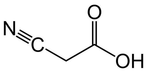 Keywords: Cyano Acetic Acid Formula V.1.svg en Cyano_Acetic_Acid de Cyanessigsäure own Jü 2012-07-27 Nitriles Cc-zero
