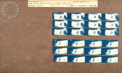 | Keywords: photography physics inventors muybridge smithsonian probably public domain probablypublicdomain SI Neg. 2004-44875. Date: na....Title: "Trotting, bare back; dark gray Belgian Horse 'Dusel'.".Series Neg. No. 1309.An. Loc. Serial No. 600.Classification: "Horses.".Muybridge's cyanotypes are working proofs, the contact prints he made from more than 20,000 negatives he took at the University of Pennsylvania between 1884 and 1886 while photographing human and animal subjects in motion from lateral (parallel), front and rear positions. Since the original negatives no longer exist, the cyanotypes provide us with the opportunity to see the pictures Muybridge achieved before he edited and cropped them for publication..From the Photographic History Collection, National Museum of American History...Credit: Eadweard Muybridge (Smithsonian Institution) SI Neg. 2004-44875. Date: na....Title: "Trotting, bare back; dark gray Belgian Horse 'Dusel'.".Series Neg. No. 1309.An. Loc. Serial No. 600.Classification: "Horses.".Muybridge's cyanotypes are working proofs, the contact prints he made from more than 20,000 negatives he took at the University of Pennsylvania between 1884 and 1886 while photographing human and animal subjects in motion from lateral (parallel), front and rear positions. Since the original negatives no longer exist, the cyanotypes provide us with the opportunity to see the pictures Muybridge achieved before he edited and cropped them for publication..From the Photographic History Collection, National Museum of American History...Credit: Eadweard Muybridge (Smithsonian Institution) |