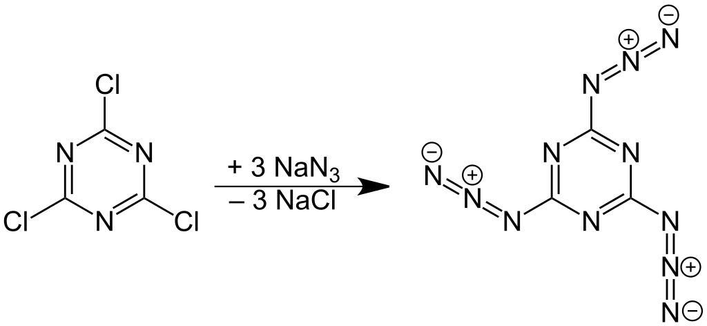Keywords: Cyanurtriazide Synthesis V.2.svg en Cyanurtriazide_Synthesis de Cyanurtriazid_Synthese own Jü 2012-04-14 Triazines Chemical syntheses Cc-zero