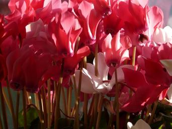 Keywords: cyclamen flower pink white flora ornamental plant blossom bloom stalk flowerpot