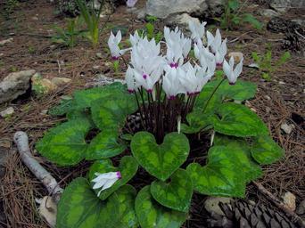 Keywords: cyclamen flowers spring flower leaves green leaves spring flowers white flowers in the forest bloom forest