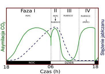 Keywords: Cycle of CO2 fixation in CAM photosynthesis.svg en Cycle of CO2 fixation in CAM photosynthesis pl Wiązanie CO2 w okresie doby u roślin z fotosyntezą CAM own Pisum 2010-01-30 German CAM cycle SVG photosynthesis