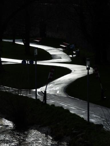 Keywords: cycle path cycle path network streets road network road traffic cyclists cycling rain wet shine