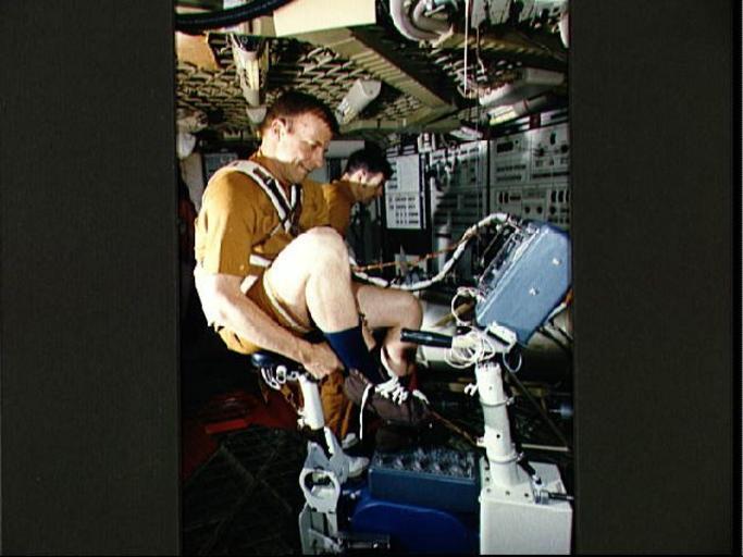 Keywords: nasa skylab astronauts cycling 1973 indoor Date March 1, 1973 Description: Astronaut Paul J. Weitz, pilot for the first manned Skylab mission, prepares to check out the bicycle ergometer in the work and experiments area of the crew quarters of the Skylab Orbital Workshop (OWS) trainer during Skylab training at the Johnson Space Center. Scientist-Astronaut Joseph P. Kerwin, science pilot of the mission, is in the background. Date March 1, 1973 Description: Astronaut Paul J. Weitz, pilot for the first manned Skylab mission, prepares to check out the bicycle ergometer in the work and experiments area of the crew quarters of the Skylab Orbital Workshop (OWS) trainer during Skylab training at the Johnson Space Center. Scientist-Astronaut Joseph P. Kerwin, science pilot of the mission, is in the background. |