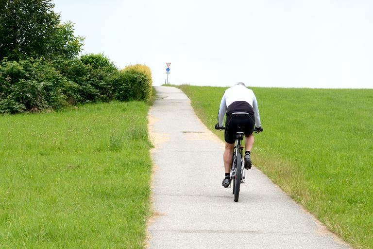 Keywords: cyclists drive bike wheel cycling leisure cycle path locomotion lane slope exhausting sport sporty trained sweating effort
