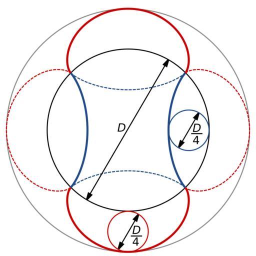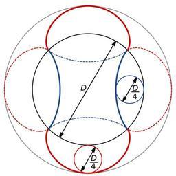 | Keywords: Cycloidal rotor construction - 2 lobes.svg Diagram showing the construction of a 2-lobed cycloidal rotor like that found in a Roots blower The red curve is an hypocycloid outside the larger generating circle black and the blue curve is an epicycloid The smaller circles are 1/4 the diameter of the larger circle The solid curve is the profile of the rotor - half is the epicycloid and half is the hypocycloid own 2010-08-27 Inductiveload Lobe pumps Hypocycloid Epicycloid | ||||
