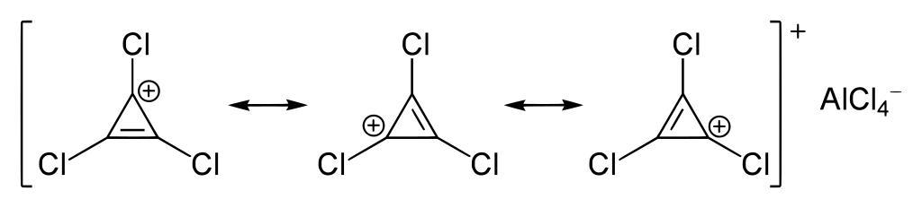 Keywords: Cyclopropenylchloride-Kation.svg Besp für ein Kation eines Cyclopropenylkations Own 2008-04-15 Yikrazuul Cycloalkene derivatives Aluminium chloride