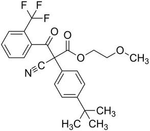 | Keywords: Cyflumetofen 200.svg validSVG Structure of 2-methoxyethyl 2- 4- tert-butyl phenyl -2-cyano-3-oxo-3- 2- trifluoromethyl phenyl propanoate Own 2014-05-30 Emeldir <span class signature-talk ></span> Chemical structure verified https //upload wikimedia org/wikipedia/commons/9/91/Cyflumetofen_200 svg 1S/C24H24F3NO4/c1-22 2 3 16-9-11-17 12-10-16 23 15-28 21 30 32-14-13-31-4 20 29 18-7-5-6-8-19 18 24 25 26 27/h5-12H 13-14H2 1-4H3 AWSZRJQNBMEZOI-UHFFFAOYSA-N 400882-07-7 PD-chem Trifluoromethylbenzenes Tert-butylbenzenes Methyl ethers |