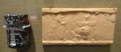 | Keywords: Cylinder seal - Oriental Institute Museum, University of Chicago - DSC07246.JPG cylinder seal was dedicated to a little-known goddess Ninishkun who is shown interceding on the owner's behalf with the great goddess Ishtar Ishtar places her right foot upon a roaring Asiatic lion lion which she restrains with a leash The scimitar in her left hand and the weapons sprouting from her winged shoulders indicate her war-like nature Stone Akkadian period ca 2330 “2150 BC 4 2 × 2 5 cm Exhibit in the Oriental Institute Museum University of Chicago Chicago Illinois USA This work is old enough so that it is in the public domain Photography was permitted in the museum without restriction 2014-08-22 14 54 39 own Daderot other versions cc-zero Cylinder seals in the Oriental Institute Museum Uploaded with UploadWizard Ishtar Women with lions in art |