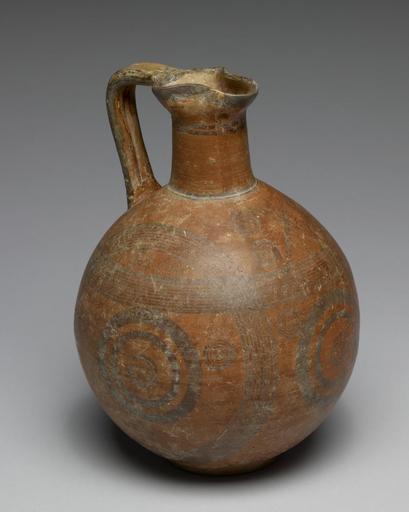 | Keywords: Cypriote - Black-on-Red Ware Jug with Geometric Design - Walters 482341 - Three Quarter Right.jpg Small and portable these jugs have been found throughout the lands surrounding Cyprus Called Black-on-Red Ware this attractive ceramic type comprises mostly small jugs The red-brown slip has a polished lustrous surface with simple geometric designs painted in black The decoration of this pottery follows the circle style of the Bichrome Ware jugs century 7 BC terracotta cm 21 accession number 48 2341 2957 William H Smith Alexandria VA Walters Art Museum 1973 by purchase Museum purchase with funds provided by the S A P Fund 1973 place of origin Cyprus Walters Art Museum license Ancient Greek pottery in the Walters Art Museum Ancient Cyprus Media contributed by the Walters Art Museum needs category review Objects on gray background |