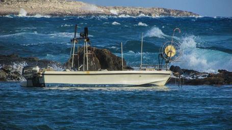 Keywords: cyprus ayia napa kermia beach boat waves smashing windy fishing shelter