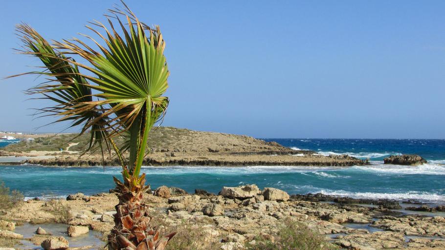 Keywords: cyprus ayia napa nissi beach palm tree coastline rocky