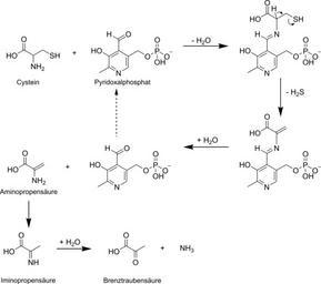 Keywords: Cysten a-b eliminierung.svg Alpha-beta elimination of cystein Own 2007-05-24 Alcibiades Coenzymes Organophosphates Cysteine