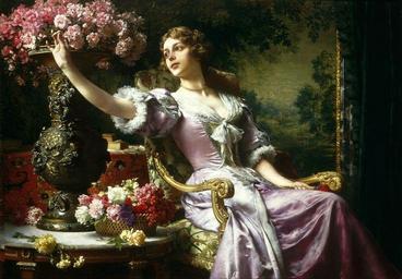 | Keywords: Czachórski Lady in a lilac dress.jpg Artwork Creator Władysław Czachórski 1880-1890 oil canvas cm 55 78 Institution National Museum Warsaw accession number MP 1393 object history credit line http //www pinakoteka zascianek pl/Czachorski/Images/Dama_w_liliowej jpg www pinakoteka zascianek pl See below PD-old-100 Paintings by Władysław Czachórski in the National Museum in Warsaw 1903 paintings in Poland 1903 oil on canvas paintings 20th-century oil paintings of sitting women at three-quarter length Armchairs in portrait paintings Females with pearl necklaces in art Females with pink dresses in art Czachórski Flower baskets in art Paintings of baskets Portrait paintings of females with flowers Females in art in three-quarter views Arms Females looking left in art People with vases People looking back right People holding plants Portraits with carnations or cloves Rococo revival paintings Rococo revival paintings Vases in portrait paintings Woman's clothes and fashion in painting Women facing left in art Women facing right and looking left |