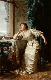 | Keywords: Czachórski Pensive.jpg Artwork Creator Władysław Czachórski 1883 oil canvas cm 90 59 5 Institution National Museum Warsaw Not on view accession number MP 250 object history credit line exhibition history Czachórski/1883 signature/date bottom right Lechosław Lameński Dorota Kubacka 2001 Władysław Czachórski 1850-1911 Muzeum Lubelskie w Lublinie ISBN 83-90184-20-6 p 75 http //www mnw art pl/wydarzenia/kalendarz-wydarzen/1644 wydarzenie html www mnw art pl See below PD-old-auto-1923 1911 DEFAULTSORT 1883; Pensive Paintings by Władysław Czachórski in the National Museum in Warsaw 1883 paintings Portraits of people thinking Armchairs in portrait paintings Females with white dresses in art Czachórski Portrait paintings of sitting women Females with walls in art Females facing left in art Daydreams in art Baroque revival paintings Woman's clothes and fashion in painting Women facing left in art |