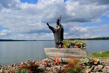 Keywords: czaplinek poland sky clouds lake water scenic statue monument pope john paul flowers plants forest trees woods nature outside sculpture summer spring