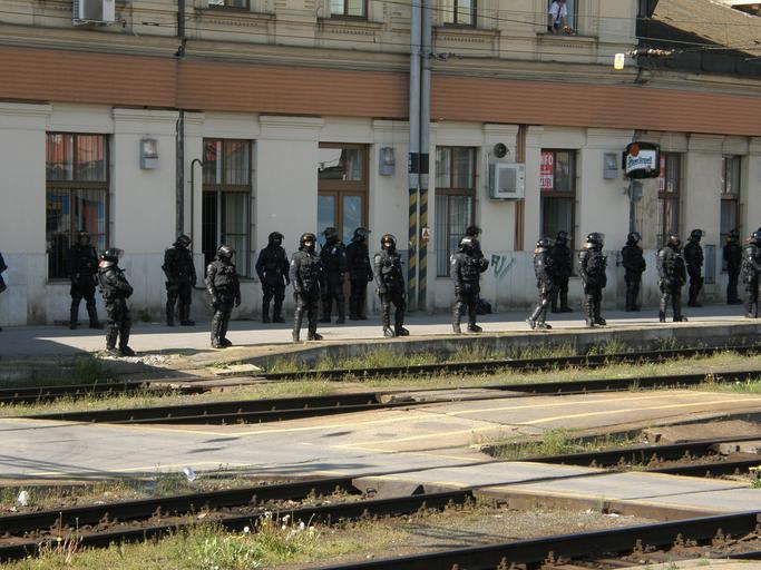 Keywords: Czech police 14.JPG Czech police Brno own 2008-04-28 Lukáš Malý uvolňuji dílo Police action in Brno hlavní nádraží Baník Ostrava - 1 FC Brno 28-th April 2008