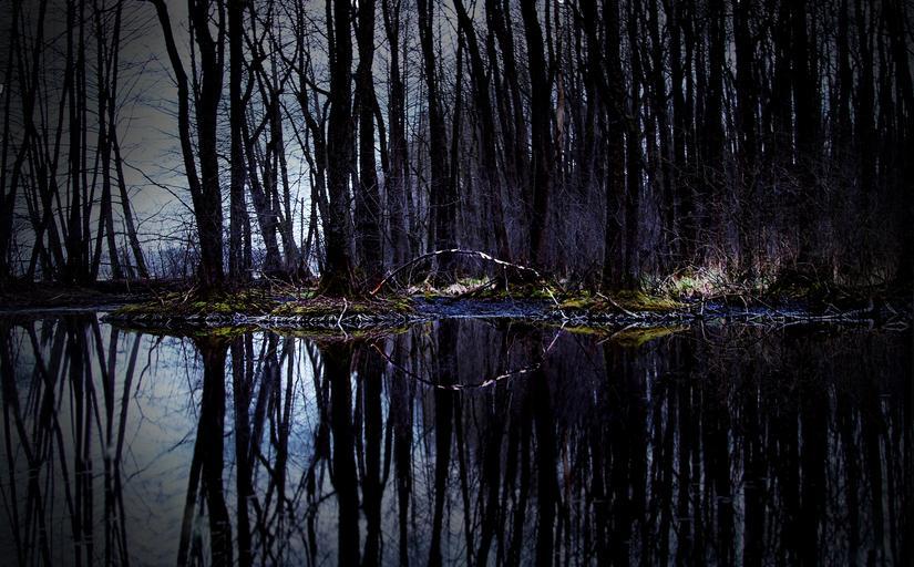 Keywords: czech republic czech budejovice water pond dark solitude fear clouds reflection nature surface sky reeds south bohemia stones trees black bank landscape beauty forest shadow bay canon photo free picture
