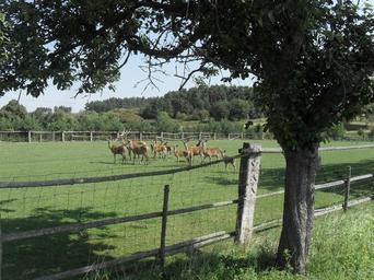 Keywords: czech republic landscape forest trees woods fence scenic deer field grass plants sky clouds nature outside country countryside summer spring