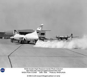 MAKE A MEME View Large Image ...Liquid OXygen) jettison on ramp DVIDS740118.jpg en In this 1956 photograph the Douglas D-558-2 1 is shown venting liquid oxigen LOX The photograph was taken in back of the NACA High-Speed Flight Station's new hangar and building on the main ...