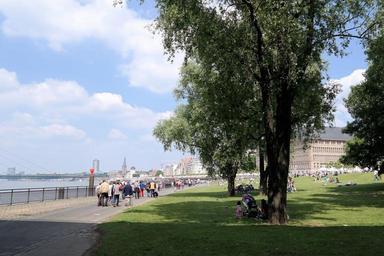 Keywords: düsseldorf rhine promenade city rhine river rhine promenade human crowds