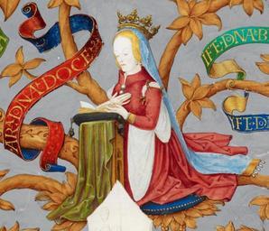 | Keywords: D. Dulce de Barcelona, Rainha de Portugal - The Portuguese Genealogy (Genealogia dos Reis de Portugal).png en D Dulce of Barcelona 1160-1198 Queen consort of Portugal through her marriage to King Sancho I pt D Dulce de Barcelona 1160-1198 Rainha consorte de Portugal em virtude do seu casamento com D Sancho I Between 1530 1534 Image taken from The Portuguese Genealogy / Genealogia dos Reis de Portugal Originally published/produced in Portugal Lisbon 1530-1534 British Library image Add MS 12531 add_ms_12531_f008r Add_MS_12531 yes Creator Antonio de Hollanda other versions PD-old-70-1923 Uploaded with UploadWizard Dulce of Aragon in miniature The Portuguese Genealogy Genealogia dos Reis de Portugal 1530-1534 - BL Add MS 12531 Images released by British Library Images Online/derivatives |