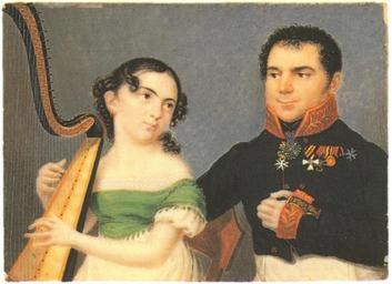 Keywords: D. I. Kudryavtsev.jpg ru Дмит ий Иванович Куд явцев 1756 1828 с женой Софьей Александ овной 1784 1835 скан Анд ей Иосиф Хинтс 1821 Portraits with harps Portrait miniatures in the Hermitage PD-old