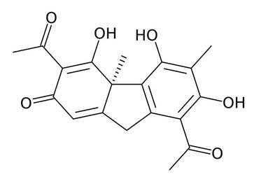 Keywords: D-Usnic acid.svg created with bkchem+inkscape 2006-04-07 own assumed Ayacop Antibiotics