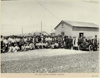 | Keywords: archives state records nsw staterecordsnsw newsouthwales blackandwhite daceyville suburb garden suburb gardensuburb sydney people builders public housing publichousing srnsw:series=5225 outdoor black and white Pay day, Dacey Garden suburb Dated: No date Digital ID: 5225_a018_a018000003 Rights: www.records.nsw.gov.au/about-us/rights-and-permissions We'd love to hear from you if you use our photos. From a series of photographs of 'Dacey Garden Suburb' (Daceyville) - a development by the Housing Board of NSW as Sydney's "first planned modern garden suburb". Daceyville was developed between 1913 and 1918 and is located in south-eastern Sydney within the municipalities of Mascot and Botany. The images in the series show scenes of the area before development, road building, the types of houses built, shops, as well as the Public School. The suburb was named after the state parliamentarian John Rowland Dacey who played a vital role in the approval of this urban development. Many other photos in our collection are available to view and browse on our website using Photo Investigator. Pay day, Dacey Garden suburb Dated: No date Digital ID: 5225_a018_a018000003 Rights: www.records.nsw.gov.au/about-us/rights-and-permissions We'd love to hear from you if you use our photos. From a series of photographs of 'Dacey Garden Suburb' (Daceyville) - a development by the Housing Board of NSW as Sydney's "first planned modern garden suburb". Daceyville was developed between 1913 and 1918 and is located in south-eastern Sydney within the municipalities of Mascot and Botany. The images in the series show scenes of the area before development, road building, the types of houses built, shops, as well as the Public School. The suburb was named after the state parliamentarian John Rowland Dacey who played a vital role in the approval of this urban development. Many other photos in our collection are available to view and browse on our website using Photo Investigator. |