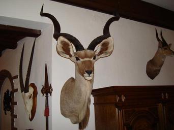 | Keywords: Dachswald trophy 2 Kudu.jpg Hunting trophy at the Dachswald Badger Forest hotel in Stuttgart Germany Rlevse 2010-01-22 Rlevse Photographs by Rlevse Dachswald Hunting trophies Taxidermied animal heads Kudus taxidermy Taxidermied Bovidae heads |