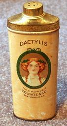 Keywords: Dactylis talc powder tin, Cogate & Co, pic2.JPG Very old product that is not produced and not sold any more own 2013-12-22 12 59 22 Alf van Beem CC-zero Trademarked Talcum powder tins