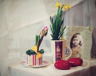 Keywords: daffodil hyacinth flower cup border retro decoration