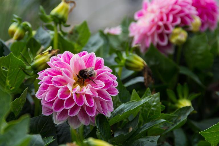 Keywords: dahlia flower plant garden perk bumblebee dahlia field flowers bloom flourish flowering dalia pink green sheet leaves flora petal merry lilac summer bloom time blossom blossom time violet hovenieren park gardening color coloured colorful plants nice nature botanica botany nectar pollen pollination