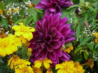 Keywords: dahlia flowers purple yellow blossom bloom autumn