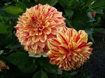 Keywords: dahlia flowers two tone orange yellow summer garden leaf