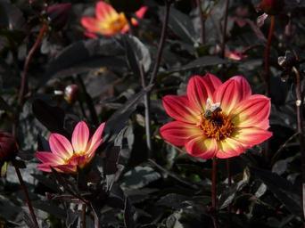 Keywords: dahlia garden red yellow flower blossom bloom back light buds dahlia hortensis composites asteraceae simple dahlia easy flowering
