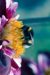 Keywords: dahlia hortensis hummel blossom bloom macro insect flower animal close dahlia neck frills-dahlia
