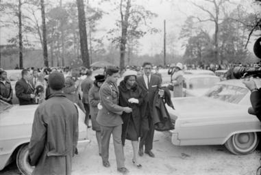 | Keywords: ms-dept-archives-history msdeptarchiveshistory moncrief mdah:sysid=94908 murder civil rights civilrights blackandwhite monochrome outdoor black and white Collection: Moncrief Photograph Collection Call number: PI/1994.0005 System ID: 94908. Link to the catalog Vernon Dahmer funeral, Shady Grove Baptist Church, Kelly Settlement (Hattiesburg, Miss.), afternoon of January 15, 1966. Ellie Dahmer, widow of slain civil rights leader Vernon Dahmer, assisted to car by family members. Scanned as TIFF in 2005-06-27 by MDAH. Credit: Courtesy of the Mississippi Department of Archives and History. Collection: Moncrief Photograph Collection Call number: PI/1994.0005 System ID: 94908. Link to the catalog Vernon Dahmer funeral, Shady Grove Baptist Church, Kelly Settlement (Hattiesburg, Miss.), afternoon of January 15, 1966. Ellie Dahmer, widow of slain civil rights leader Vernon Dahmer, assisted to car by family members. Scanned as TIFF in 2005-06-27 by MDAH. Credit: Courtesy of the Mississippi Department of Archives and History. |