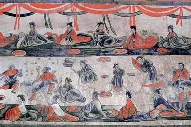| Keywords: Dahuting tomb banquet scene with jugglers, Eastern Han Dynasty, mural.jpg en The Dahuting Tomb Chinese 打虎亭汉墓 Pinyin Dahuting Han mu; Wade-Giles Tahut'ing Han mu of the late Eastern Han Dynasty 25-220 AD located in Zhengzhou Henan province China was excavated in 1960-1961 and contains vault-arched burial chambers decorated with murals showing scenes of daily life <br>For further information see the Baidu article in Chinese http //baike baidu com/view/230941 htm 打虎亭汉墓 <br>http //blog sina com cn/s/blog_53928e100102voyg html Click here for more pictures and a step-by-step walkthrough of the tomb from the outside down a stairwell and through the vaulted burial chambers Late 2nd or early 3rd century AD http //news sina com cn/c/2004-08-25/08044129741 shtml News sina com cn<br> http //www zzldcn cn/Panoramic/Pages/91_1621 html Zzldcn cn National Cultural Information Resources Sharing Project Zhengzhou Branch<br> http //bbs photofans cn/blog php mod view_mob id 56507 Bbs photofans cn<br> https //www synotrip com/henan-province/sky-han/dahuting-han-dynasty-tombs Synotrip com Henan Province<br> https //www tripadvisor com/LocationPhotoDirectLink-g1152494-d1834409-i158766092-Dahuting_Tomb_of_Han_Dynasty-Xinmi_Henan html Tripadvisor com<br> Anonymous artists of the Eastern Han period late 2nd to early 3rd century AD other versions Custom license marker 2016 10 18 PD-Art-100 Dahuting Tomb murals Jugglers Banquets in art |