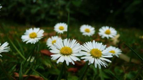 Keywords: daisies white flowers daisy flowering plants blossoms blooming spring blooms fleurs floral gardens ornamental green leaves green background