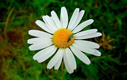 Keywords: daisy ox eye daisy flower plant petal heart blossom insect insect on flower macro