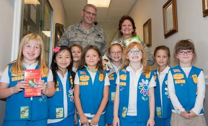 | Keywords: girl scouts girlscouts indoor Girl Scout Daisy Troop 3390 hosted a "Troops to Troops," cookie delivery event. The group delivered 200 boxes of cookies to Airmen of the 136th Airlift Wing, August 27, 2016, Naval Air Station Fort Worth Joint Reserve Base, Texas. Girl Scout Daisy Troop 3390 hosted a "Troops to Troops," cookie delivery event. The group delivered 200 boxes of cookies to Airmen of the 136th Airlift Wing, August 27, 2016, Naval Air Station Fort Worth Joint Reserve Base, Texas. |