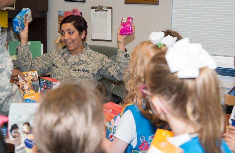 Keywords: girl scouts girlscouts Girl Scout Daisy Troop 3390 hosted a "Troops to Troops," cookie delivery event. The group delivered 200 boxes of cookies to Airmen of the 136th Airlift Wing, August 27, 2016, Naval Air Station Fort Worth Joint Reserve Base, Texas. Girl Scout Daisy Troop 3390 hosted a "Troops to Troops," cookie delivery event. The group delivered 200 boxes of cookies to Airmen of the 136th Airlift Wing, August 27, 2016, Naval Air Station Fort Worth Joint Reserve Base, Texas.
