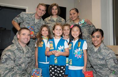 | Keywords: girl scouts girlscouts people Girl Scout Daisy Troop 3390 hosted a "Troops to Troops," cookie delivery event. The group delivered 200 boxes of cookies to Airmen of the 136th Airlift Wing, August 27, 2016, Naval Air Station Fort Worth Joint Reserve Base, Texas. Girl Scout Daisy Troop 3390 hosted a "Troops to Troops," cookie delivery event. The group delivered 200 boxes of cookies to Airmen of the 136th Airlift Wing, August 27, 2016, Naval Air Station Fort Worth Joint Reserve Base, Texas. |