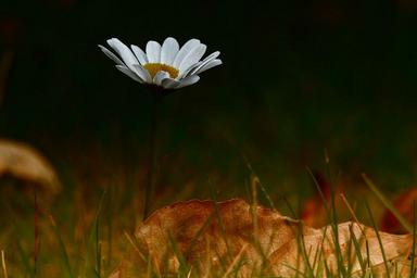 Keywords: daisy wild flower white yellow dry leaf autumn fall meadow dawn grass plant nature